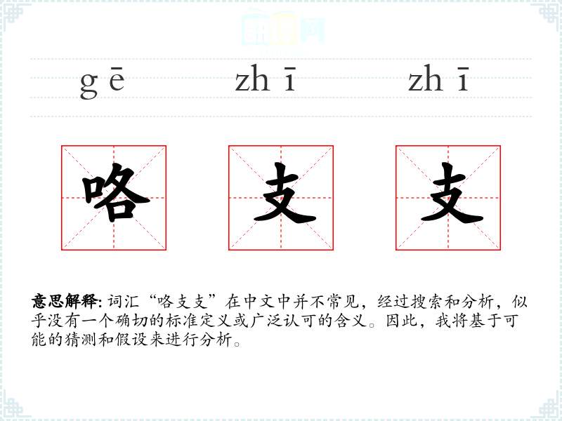 词汇“咯支支”在中文中并不常见,经过搜索和分析,似乎没有一个确切的标准定义或广泛认可的含义。因此,我将基于可能的猜测和假设来进行分析。