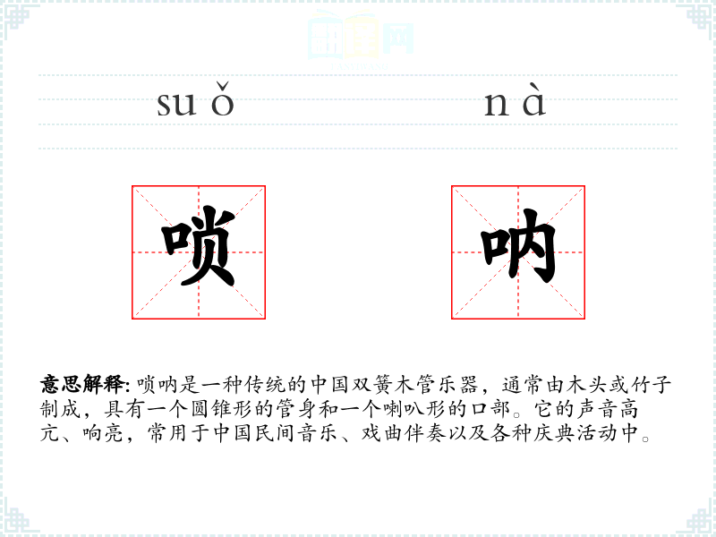 "唢呐"的意思解释、唢呐是什么意思由翻译网汉语词典查词提供。