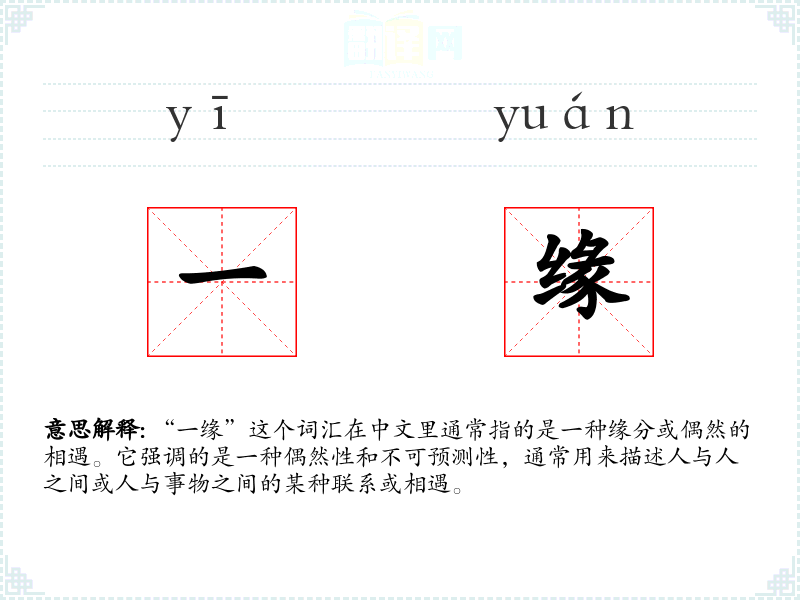 "一缘"的意思解释、一缘是什么意思由翻译网汉语词典查词提供。