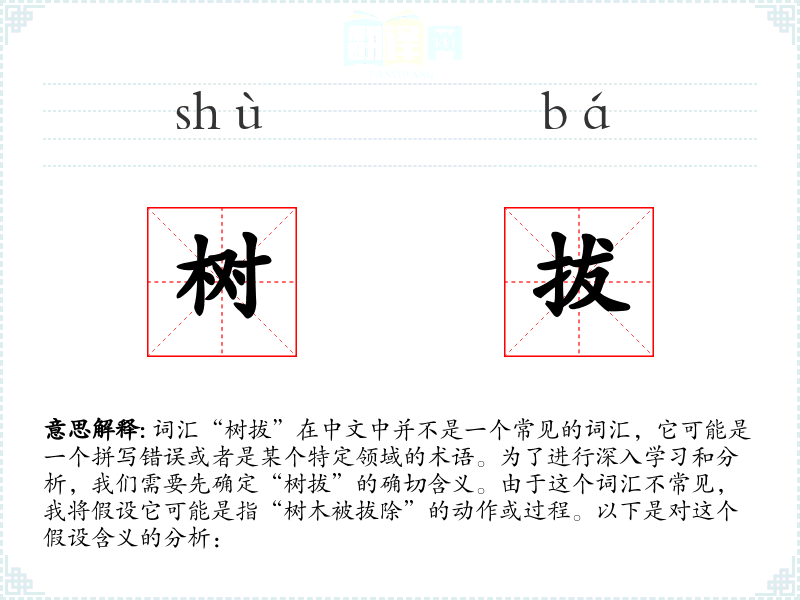 由于“树拔”不是一个标准词汇,上述分析基于假设的含义进行。如果“树拔”有其他特定含义或用法,请提供更多信息以便进行更准确的分析。