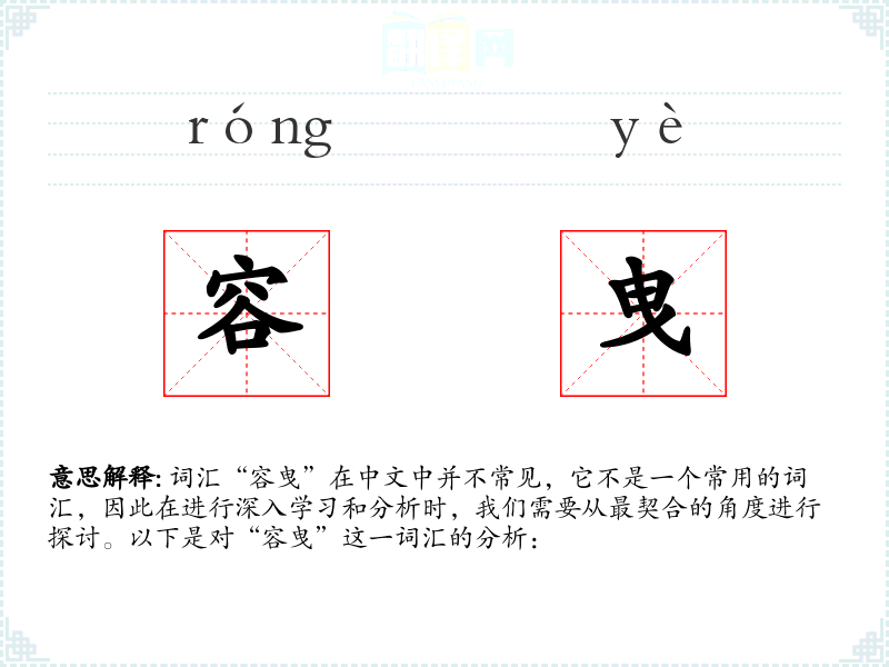 词汇“容曳”在中文中并不常见,它不是一个常用的词汇,因此在进行深入学习和分析时,我们需要从最契合的角度进行探讨。以下是对“容曳”这一词汇的分析:
