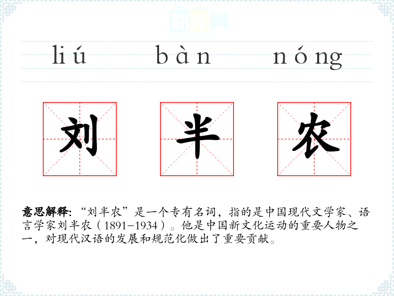 “刘半农”这个名字源自其家族姓氏“刘”和其个人名字“半农”。在历史上,他的名字随着他在文学和语言学领域的贡献而逐渐被人们熟知和尊重。