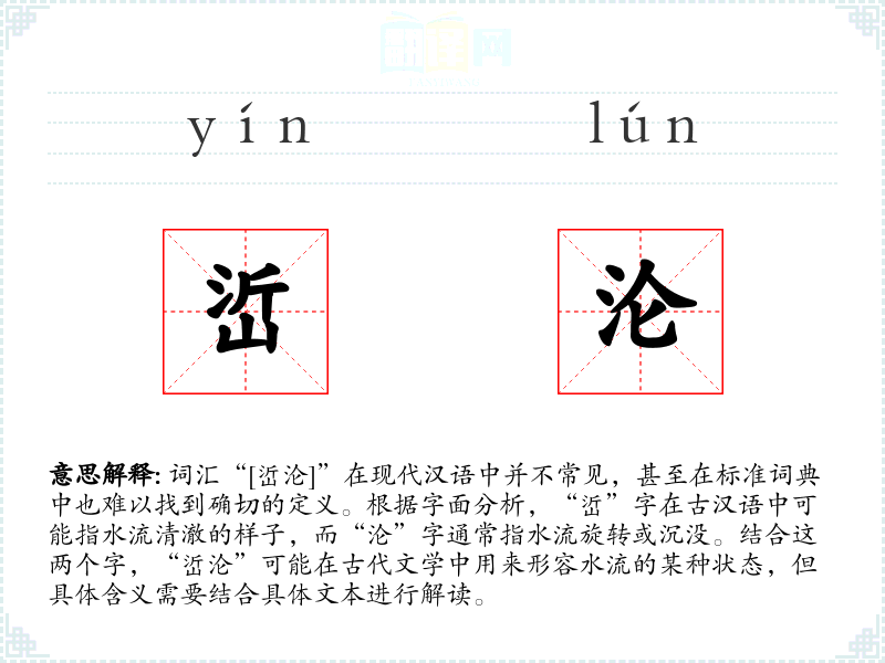 “峾”字在古代文献中较为罕见,其具体词源不详。“沦”字则较为常见,源自水流旋转或沉没的意思。