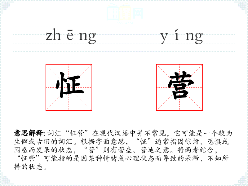 "怔营"的意思解释、怔营是什么意思由翻译网汉语词典查词提供。