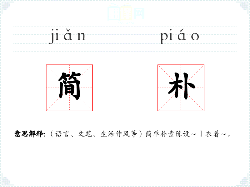 (语言、文笔、生活作风等)简单朴素陈设~ㄧ衣着~。