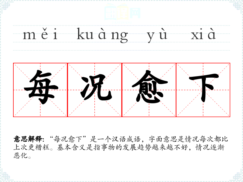 "每况愈下"的意思解释、每况愈下是什么意思由翻译网汉语词典查词提供。