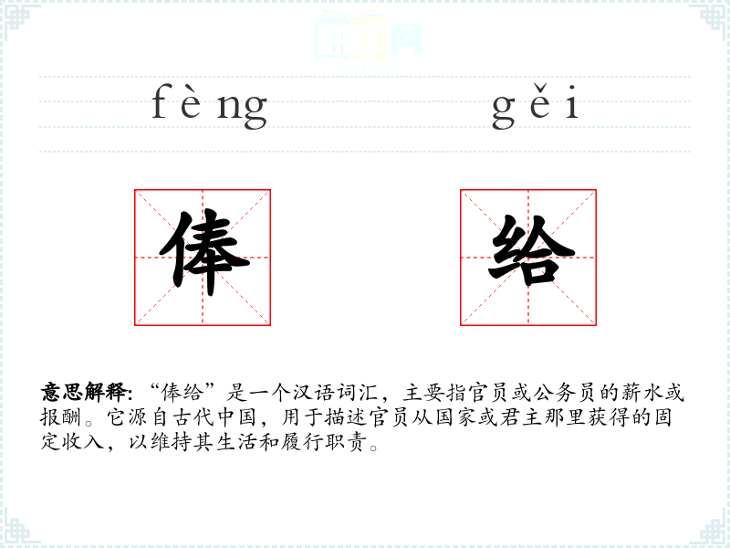 - 专业领域:在法律或政府文件中,“俸给”可能用于正式描述公务员的薪酬体系。