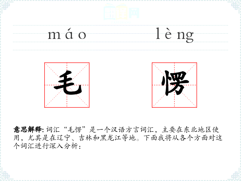 词汇“毛愣”是一个汉语方言词汇,主要在东北地区使用,尤其是在辽宁、吉林和黑龙江等地。下面我将从各个方面对这个词汇进行深入分析: