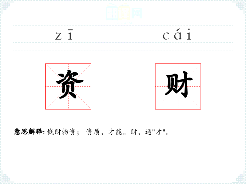 资财的分字解释