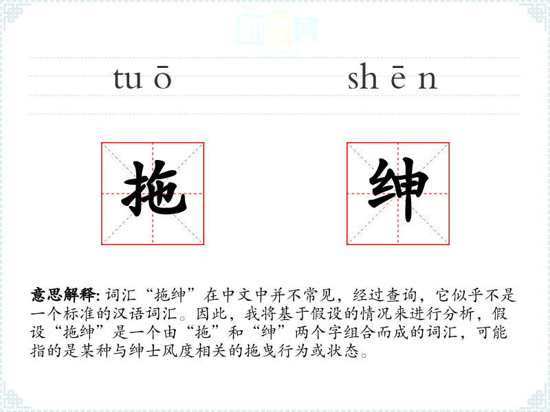 "拖绅"的意思解释、拖绅是什么意思由翻译网汉语词典查词提供。