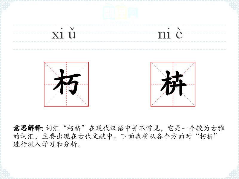 “朽枿”作为一个古雅的词汇,虽然在现代汉语中使用频率不高,但它承载了丰富的文化内涵和情感表达。在语言学*和表达中,了解和掌握这样的词汇,有助于丰富个人的语言表达能力和文化素养。