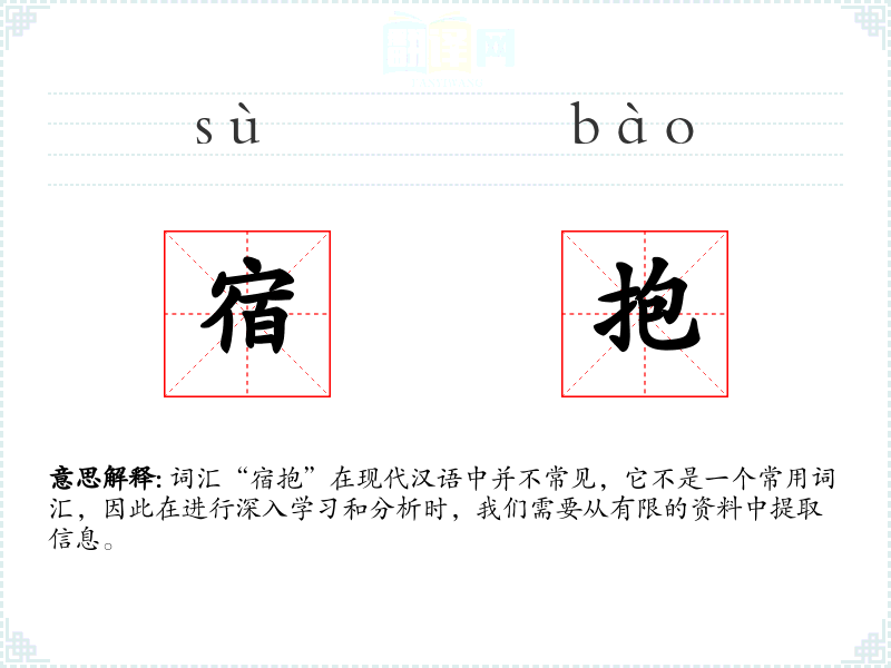 词汇“宿抱”在现代汉语中并不常见,它不是一个常用词汇,因此在进行深入学习和分析时,我们需要从有限的资料中提取信息。