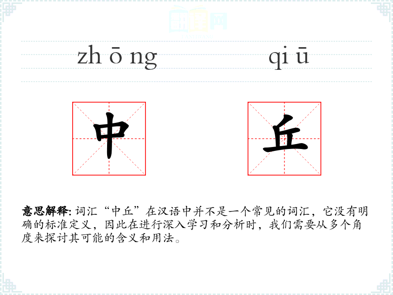 - 反义词:无(由于“中丘”不是一个常用词汇,很难找到明确的反义词)