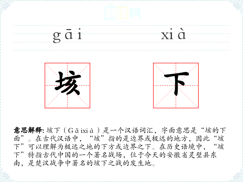 "垓下"的意思解释、垓下是什么意思由翻译网汉语词典查词提供。