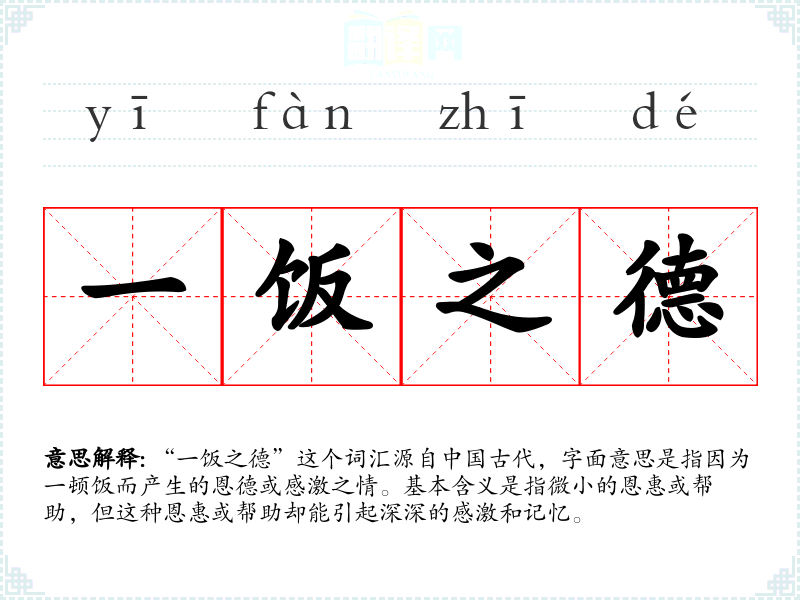 “一饭之德”这个词汇源自**古代,字面意思是指因为一顿饭而产生的恩德或感激之情。基本含义是指微小的恩惠或帮助,但这种恩惠或帮助却能引起深深的感激和记忆。