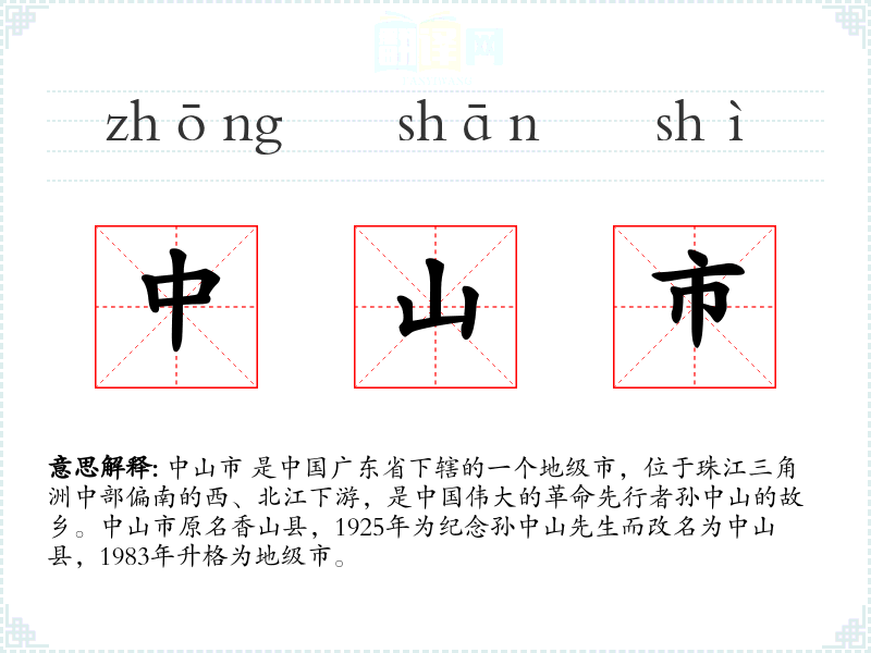- 口语:在日常口语中,中山市可能被简称为“中山”,用于指代该城市或其居民。