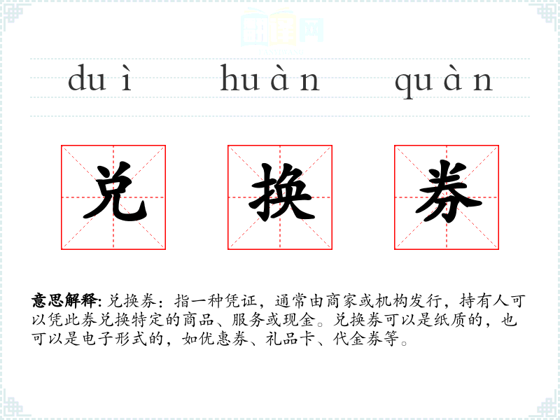 "兑换券"的意思解释、兑换券是什么意思由翻译网汉语词典查词提供。