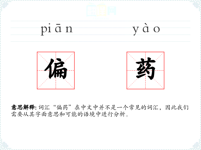 词汇“偏药”在中文中并不是一个常见的词汇,因此我们需要从其字面意思和可能的语境中进行分析。