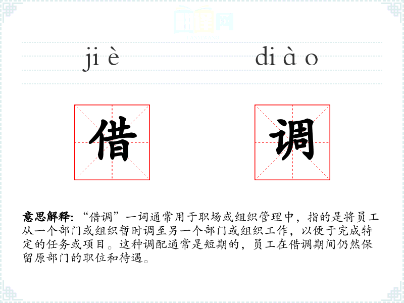 “借调”一词源于汉语,由“借”和“调”两个字组成。在古代汉语中,“借”意味着暂时使用他人的物品,“调”则有调整、调动的意思。随着现代组织管理的发展,这个词被广泛应用于描述员工在组织间的短期流动。