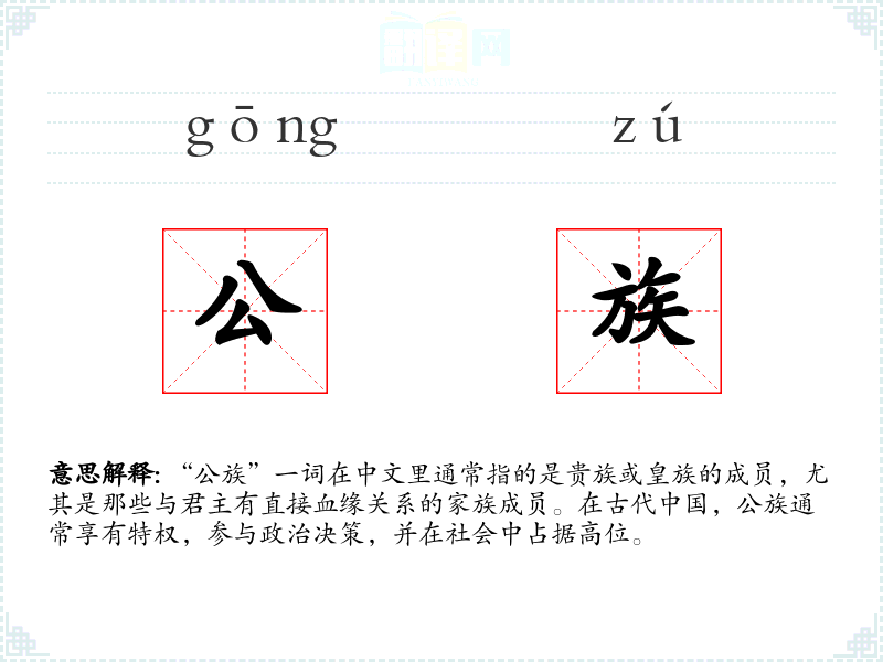 “公族”一词源于古代汉语,其中“公”指君主或高级官员,“族”指家族或群体。随着历史的发展,这个词的含义逐渐固定,成为描述特定社会阶层的名词。