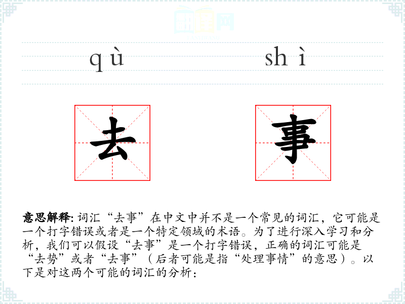 通过对“去事”这个词汇的分析,我们可以看到它在不同语境和领域中的使用情况,以及它在语言学习和表达中的重要性。