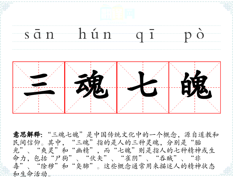 在**传统文化中,“三魂七魄”与人的生死、健康和精神状态紧密相关,反映了古人对生命和精神的深刻理解。