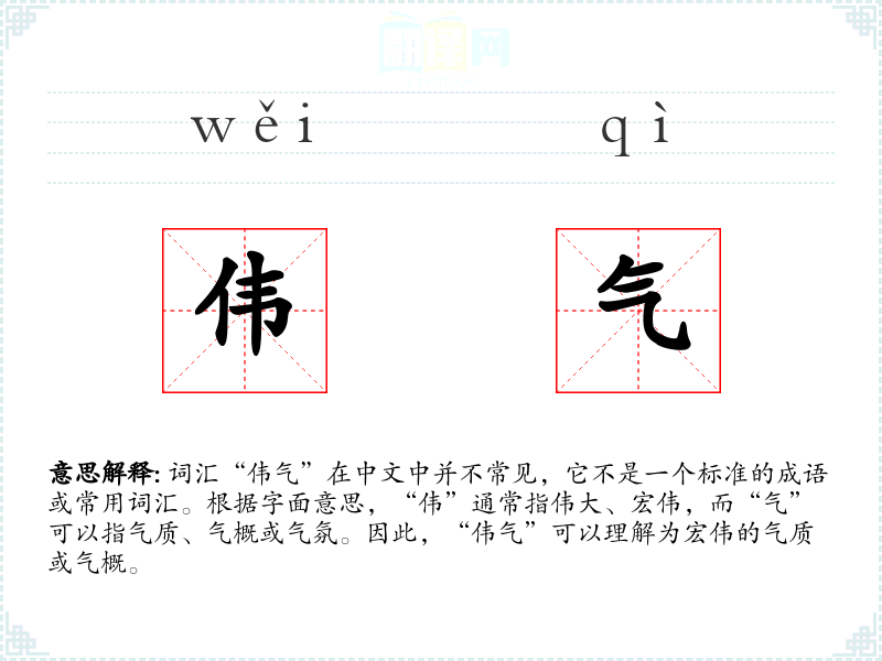 - 文学:在文学作品中,“伟气”可能用来形容英雄人物或历史**,表达其非凡的气度和影响力。