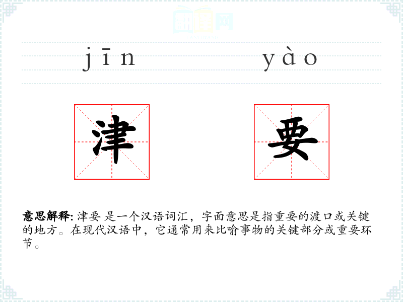 津要 可以让人联想到一幅画面:一条宽阔的河流,河中央有一个繁忙的渡口,人们和货物在此交汇,象征着重要和繁忙。