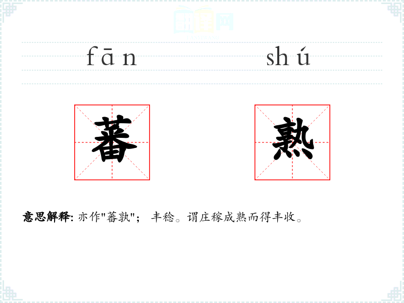 亦作"蕃孰"; 丰稔。谓庄稼成熟而得丰收。
