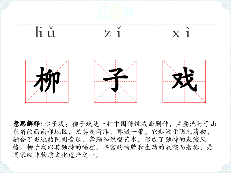 柳子戏:柳子戏是一种**传统戏曲剧种,主要流行于山东省的西南部地区,尤其是菏泽、郓城一带。它起源于明末清初,融合了当地的民间音乐、舞蹈和说唱艺术,形成了独特的表演风格。柳子戏以其独特的唱腔、丰富的曲牌和生动的表演而著称,是国家级非物质文化遗产之一。