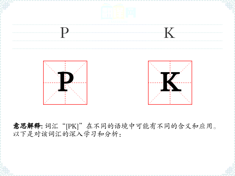 词汇“[PK]”在不同的语境中可能有不同的含义和应用。以下是对该词汇的深入学习和分析: