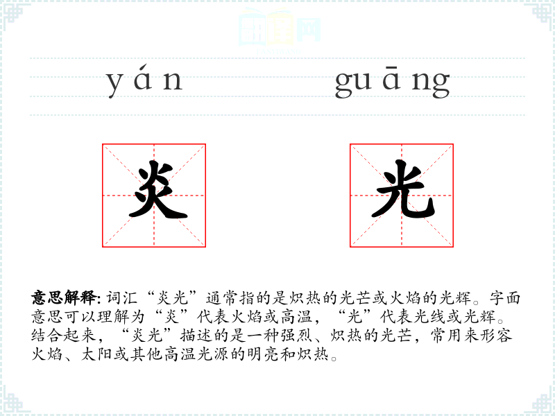 "炎光"的意思解释、炎光是什么意思由翻译网汉语词典查词提供。