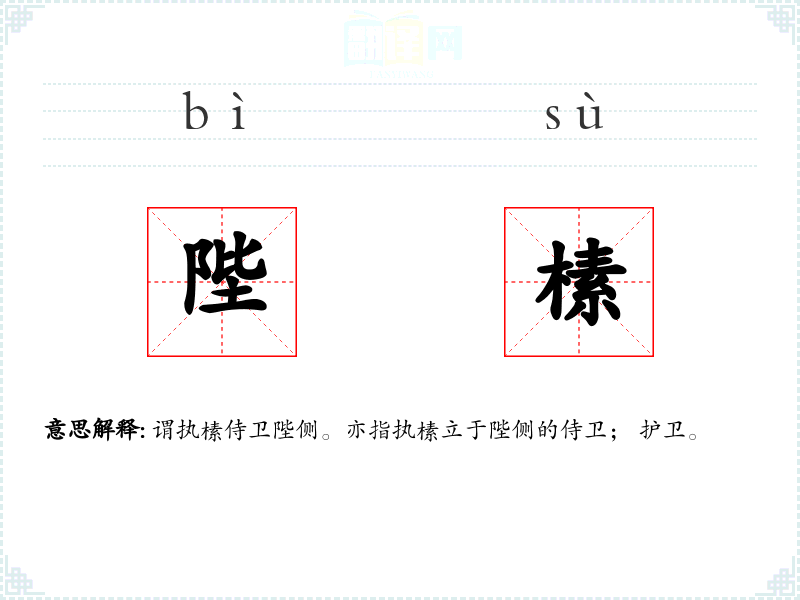 谓执榡侍卫陛侧。亦指执榡立于陛侧的侍卫; 护卫。