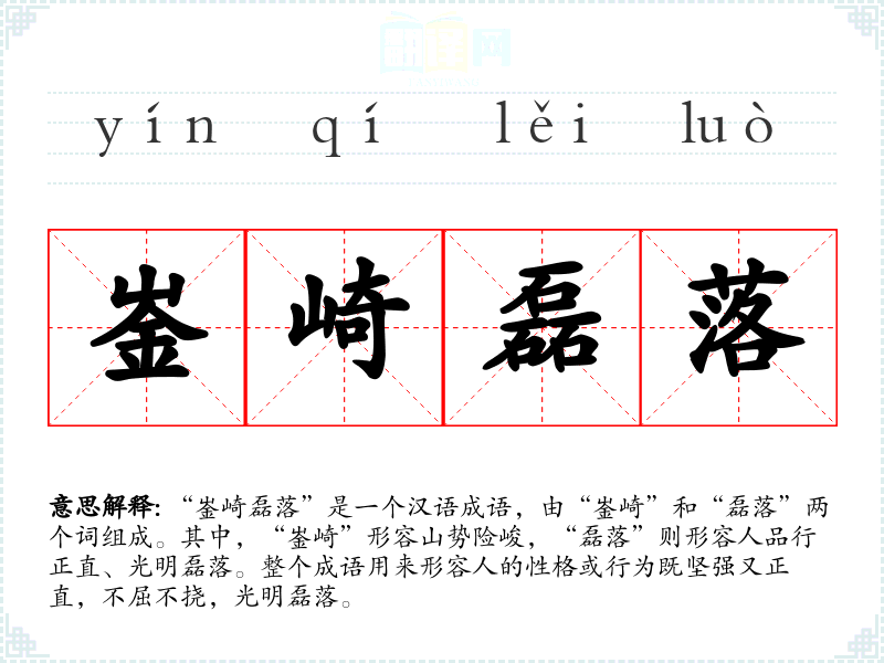 在**传统文化中,强调“君子”应具备的品质,如正直、坚强、不屈不挠等,这与“崟崎磊落”所表达的含义相契合。在社会背景中,这个成语常用来赞扬那些在困难和压力面前仍能保持高尚品质的人。