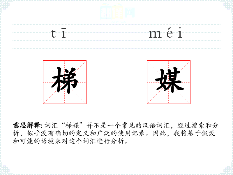 由于“梯媒”不是一个已知词汇,我们无法提供确切的词源和演变历史。