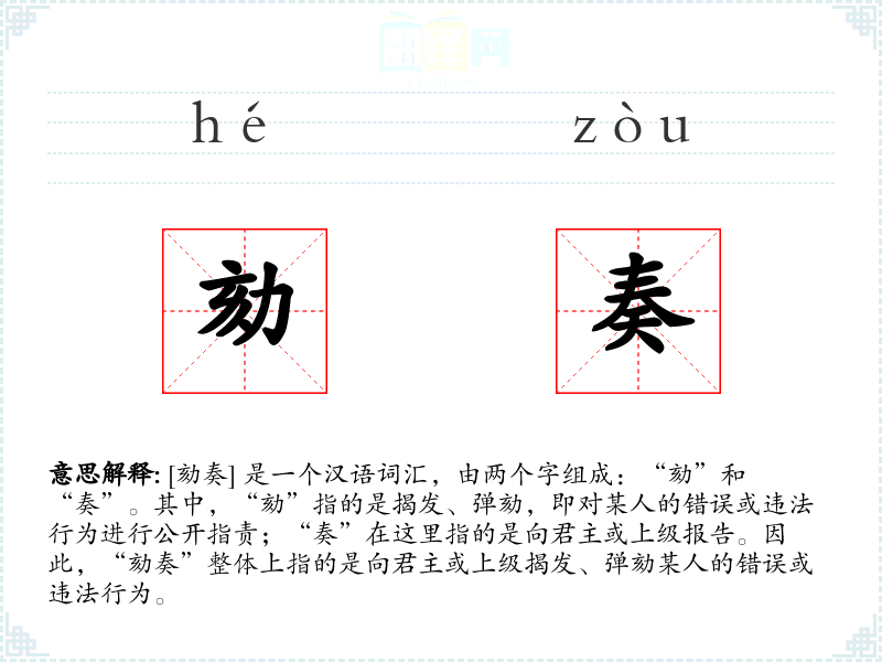 - 在古代,劾奏是一种正式的法律程序,用于揭露官员的违法行为。