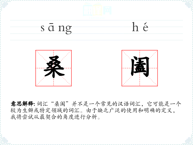 由于“桑阖”不是一个常用词汇,对其理解非常有限。在语言学*和表达中,它可能作为一个生僻词汇,用于特定的文学或历史语境中。