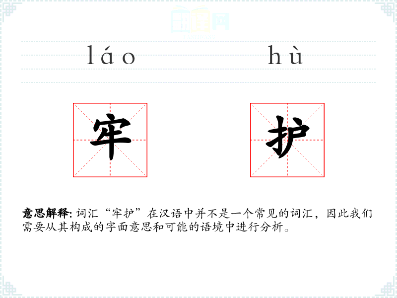 词汇“牢护”在汉语中并不是一个常见的词汇,因此我们需要从其构成的字面意思和可能的语境中进行分析。