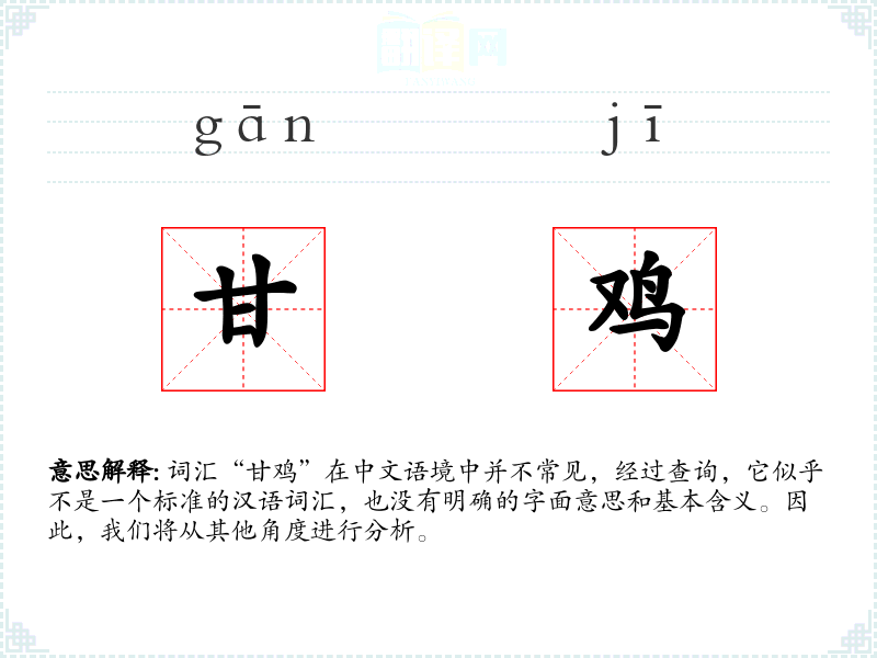 由于“甘鸡”不是一个标准词汇,我们无法提供其基本定义。