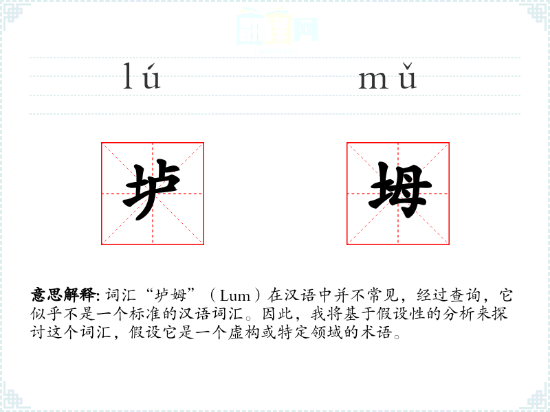 词汇“垆姆”(Lum)在汉语中并不常见,经过查询,它似乎不是一个标准的汉语词汇。因此,我将基于假设性的分析来探讨这个词汇,假设它是一个虚构或特定领域的术语。