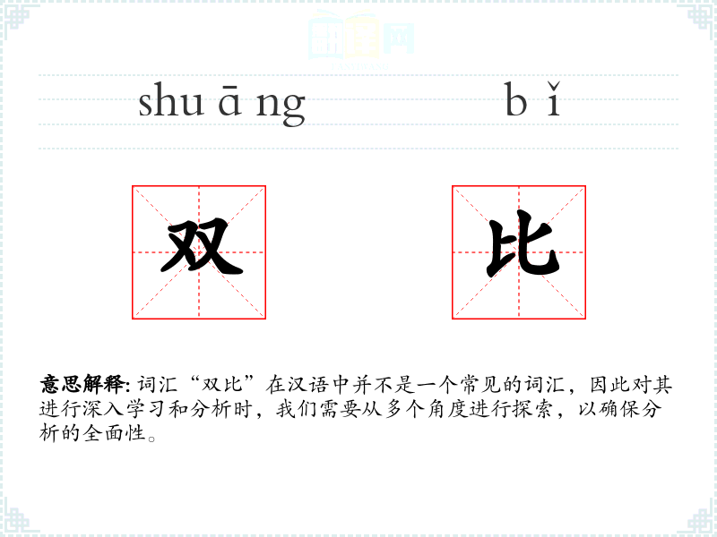 词汇“双比”在汉语中并不是一个常见的词汇,因此对其进行深入学习和分析时,我们需要从多个角度进行探索,以确保分析的全面性。