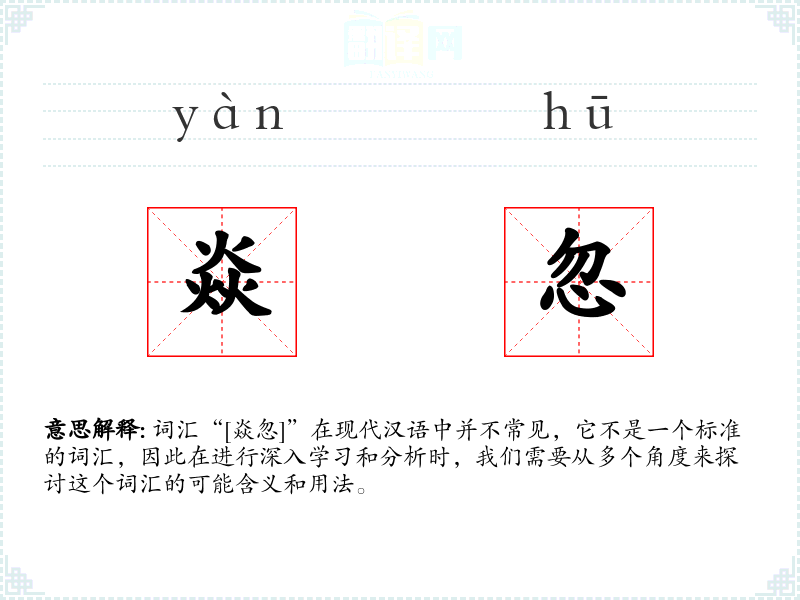 词汇“[焱忽]”在现代汉语中并不常见,它不是一个标准的词汇,因此在进行深入学习和分析时,我们需要从多个角度来探讨这个词汇的可能含义和用法。