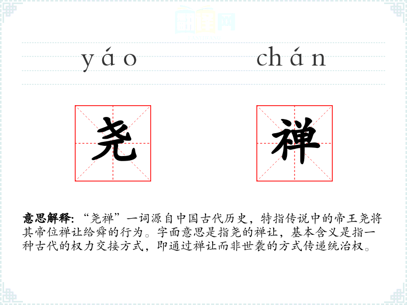 "尧禅"的意思解释、尧禅是什么意思由翻译网汉语词典查词提供。