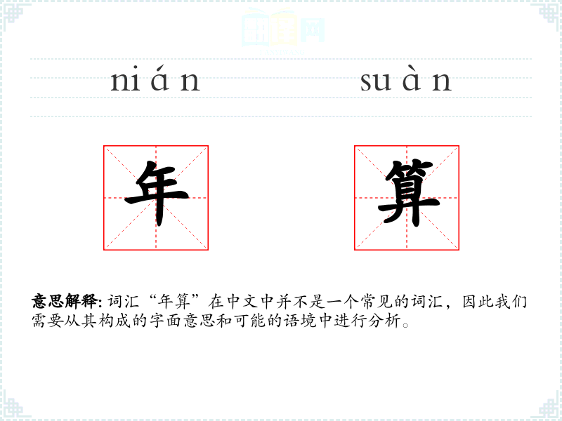 词汇“年算”在中文中并不是一个常见的词汇,因此我们需要从其构成的字面意思和可能的语境中进行分析。