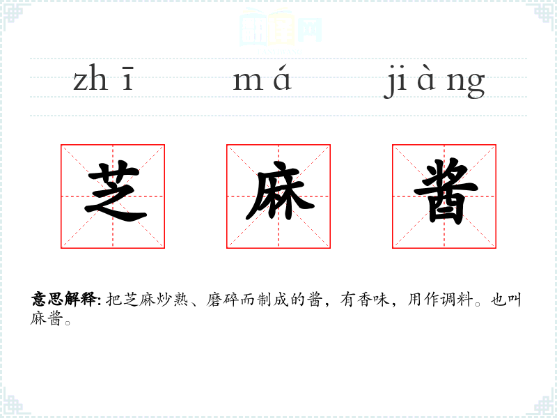 把芝麻炒熟、磨碎而制成的酱,有香味,用作调料。也叫麻酱。