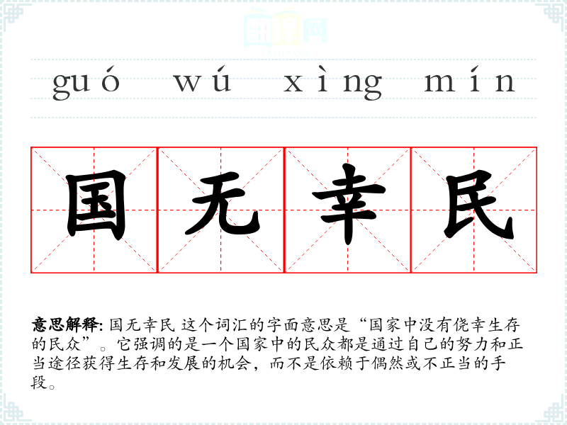 国无幸民 这个词汇可能源自**古代的儒家思想,强调个人努力和社会公平。随着时间的推移,这个词汇的含义可能有所演变,但其核心思想——通过正当途径获得成功——仍然保持不变。