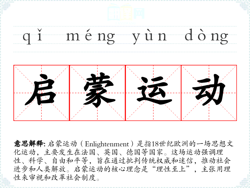 - 同义词:理性时代(Age of Reason)、思想解放(Intellectual Emancipation)