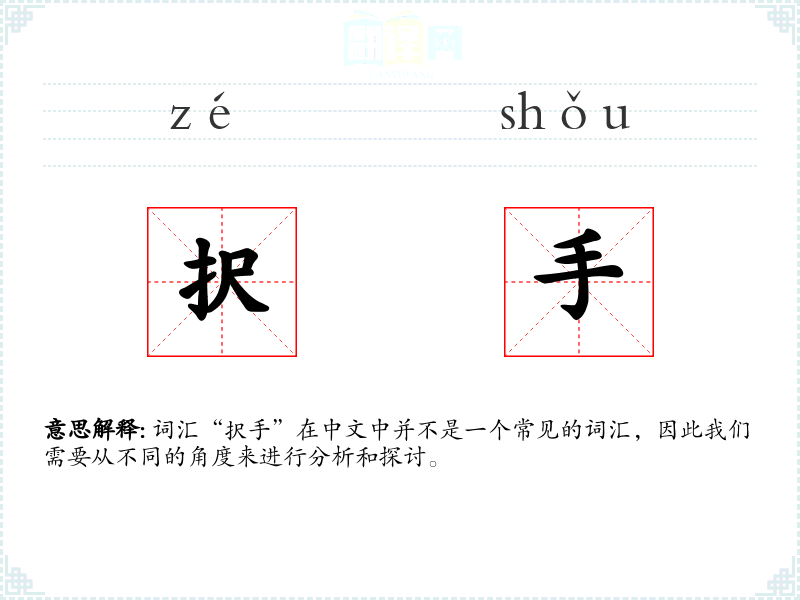 由于“択手”不是一个标准的中文词汇,我们无法给出一个确切的字面意思和基本含义。它可能是某个方言词汇、专业术语或者是打字错误。