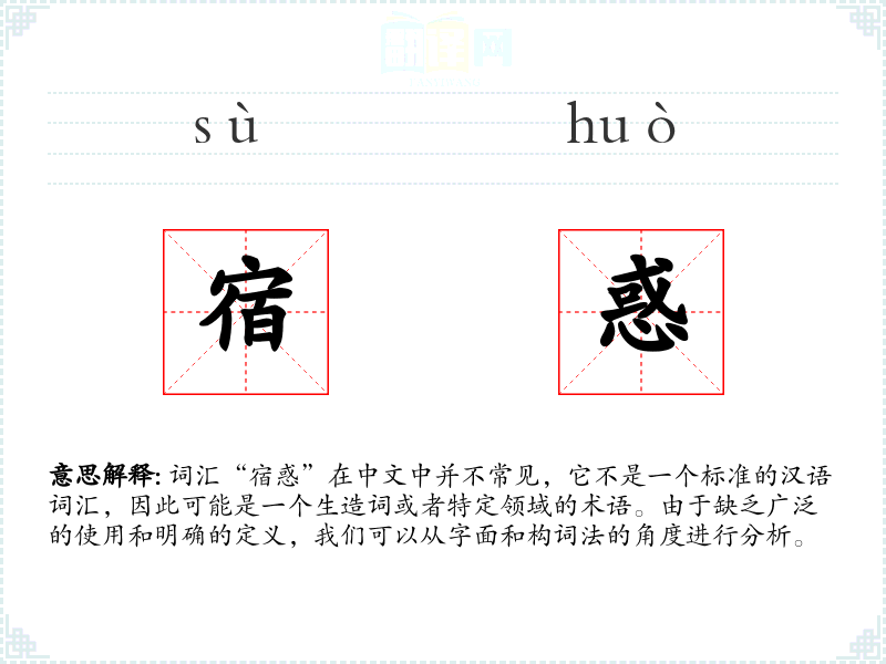 词汇“宿惑”在中文中并不常见,它不是一个标准的汉语词汇,因此可能是一个生造词或者特定领域的术语。由于缺乏广泛的使用和明确的定义,我们可以从字面和构词法的角度进行分析。