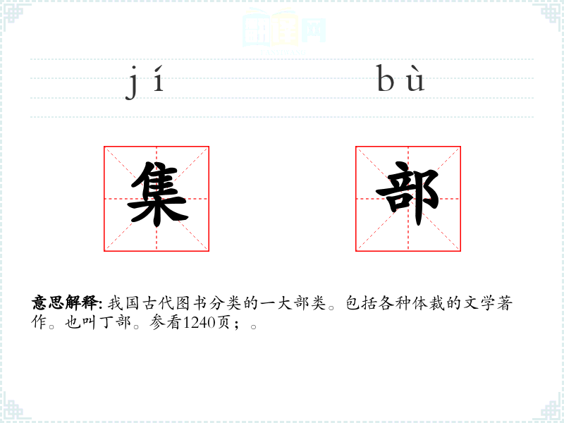 我国古代图书分类的一大部类。包括各种体裁的文学著作。也叫丁部。参看1240页;。